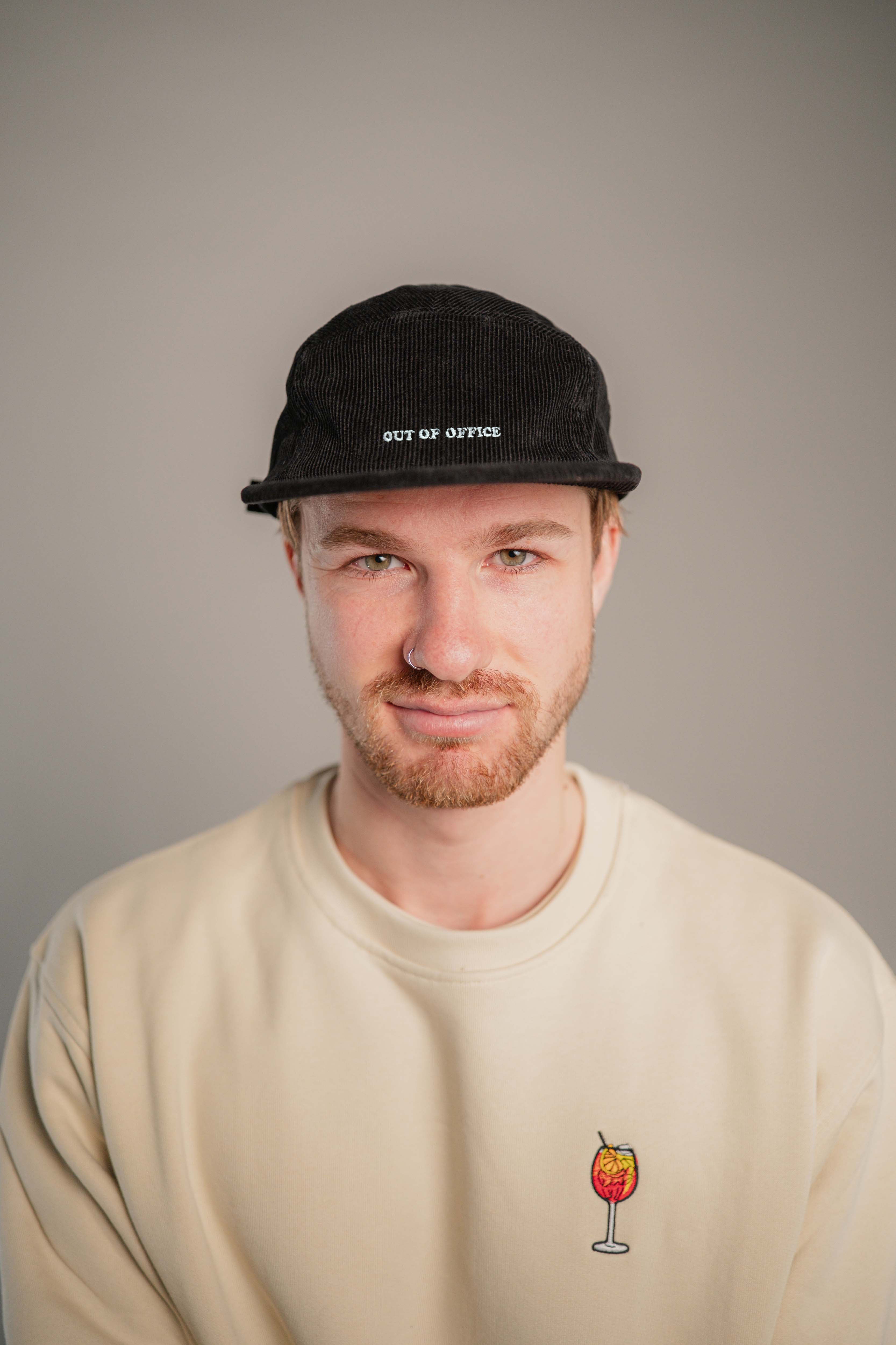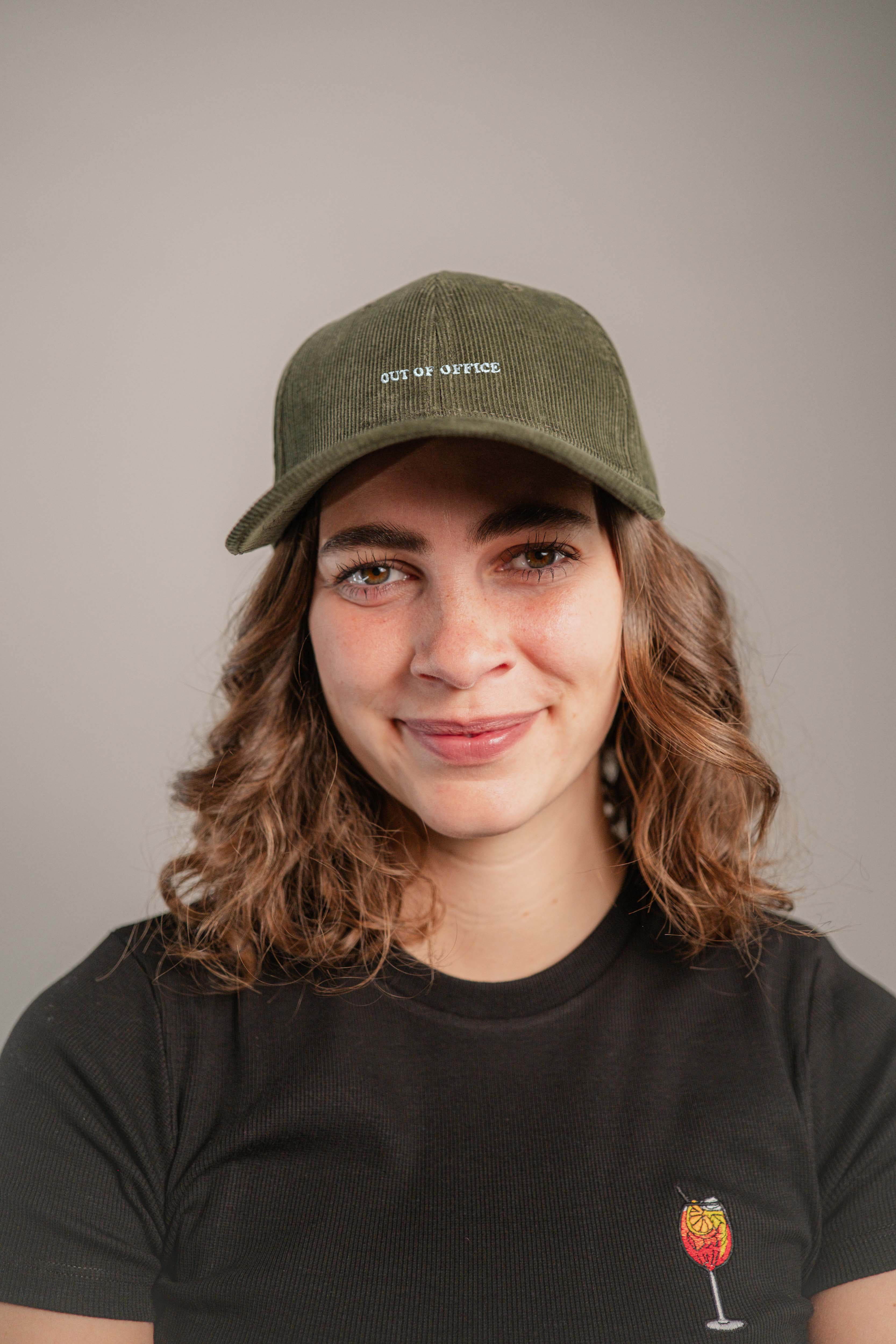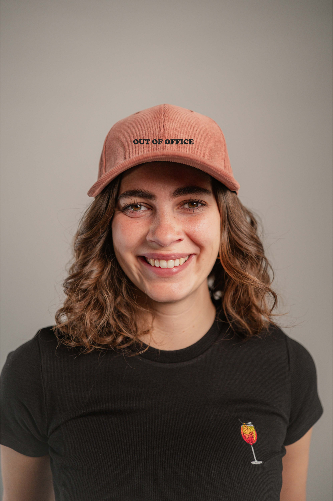 Super hochwertige Cord Cap aus 100% Bio Baumwolle mit gesticktem Out of Office Schriftzug vorne und kleinem gesticktem O.O.O. seitlich