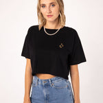 Super hochwertiges Bio Baumwoll Cropped T-Shirt mit gesticktem Coffee Beans Design in drei verschiedenen Schnitt-Varianten: Ripped, Regular & Oversized
