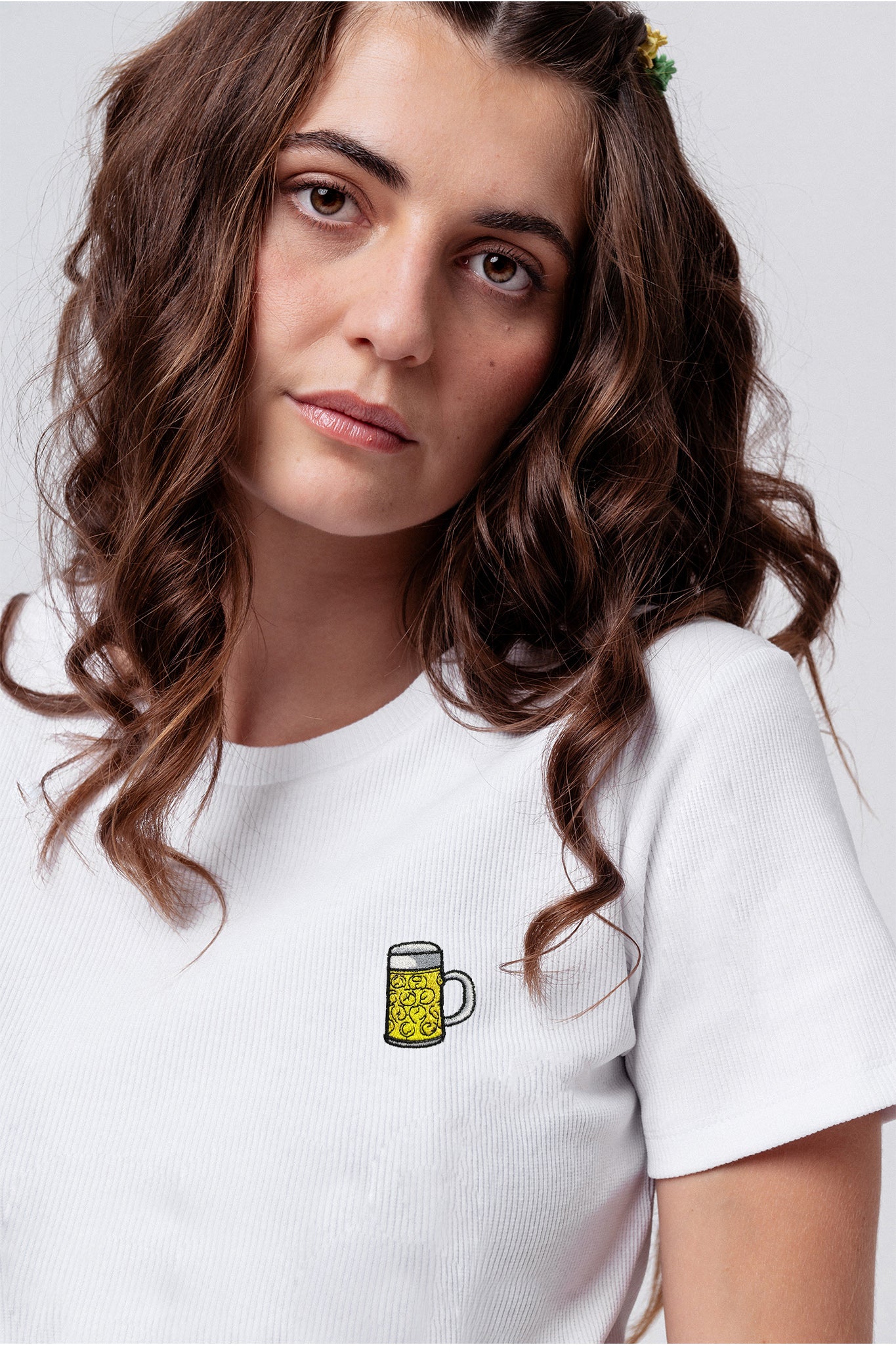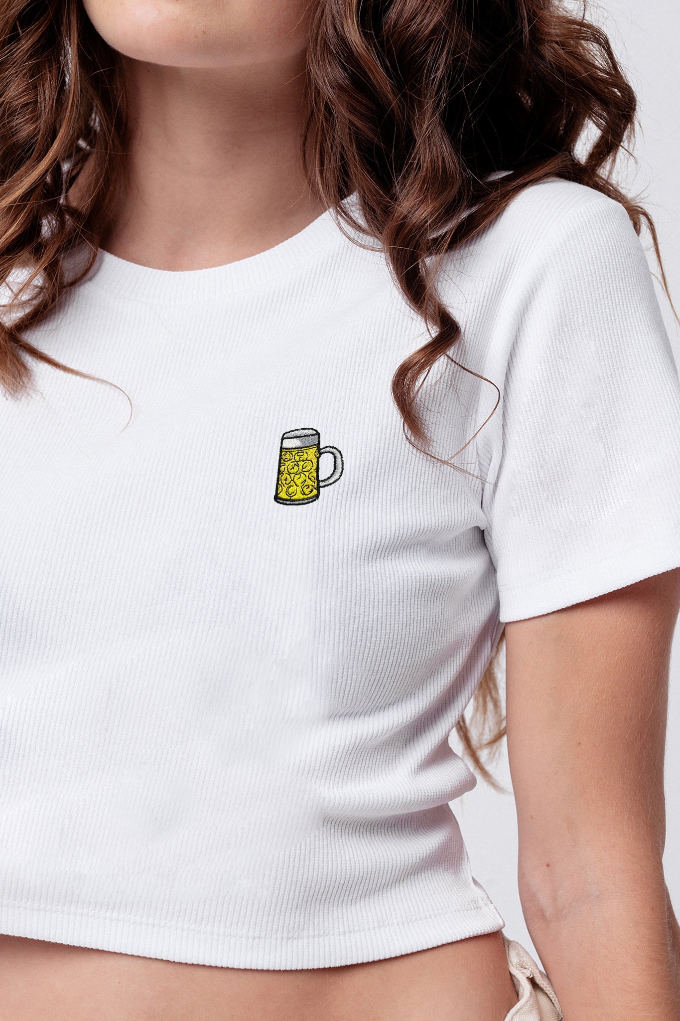 Maßkrug | Besticktes Bio Baumwoll Cropped T-Shirt
