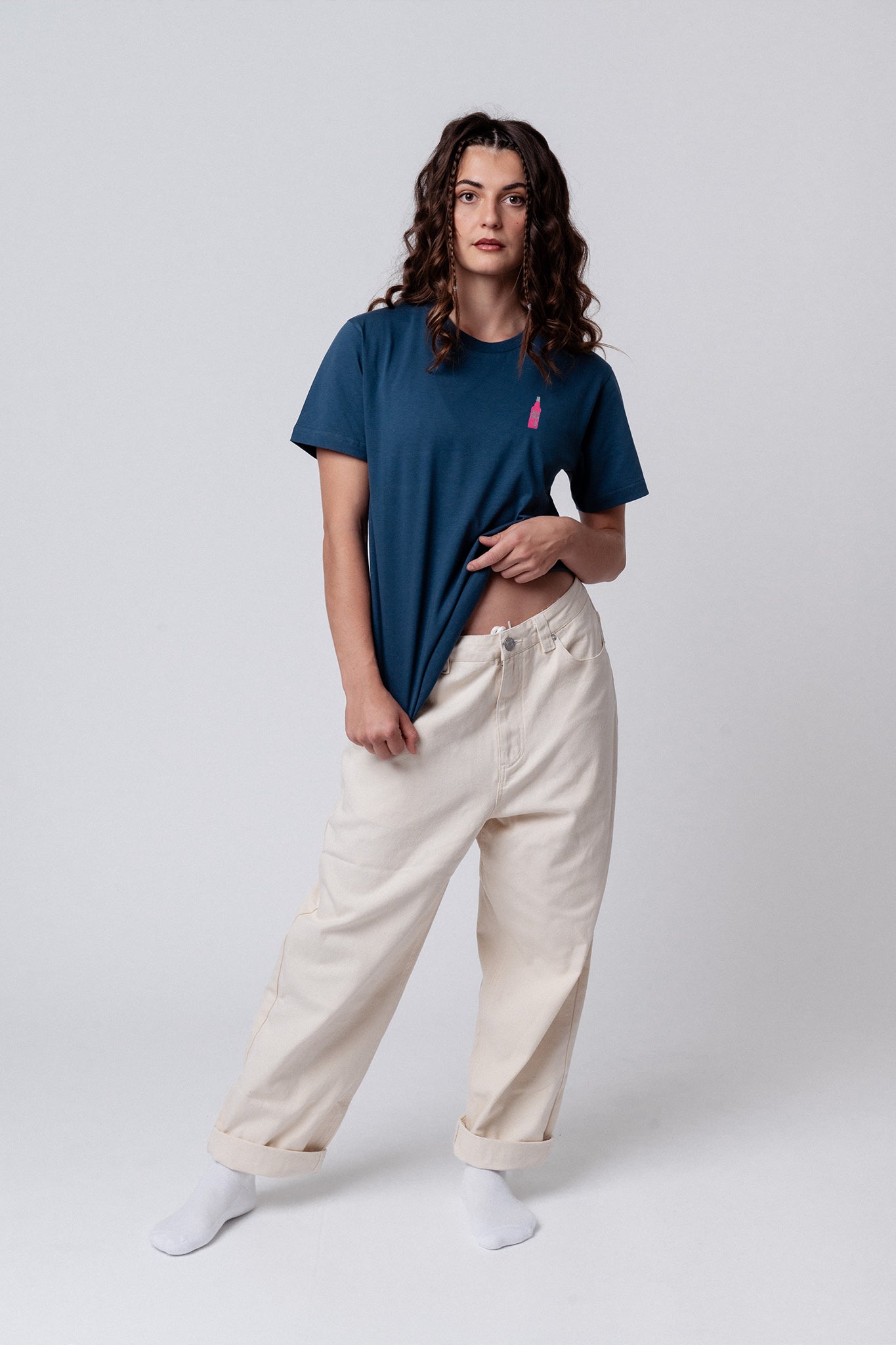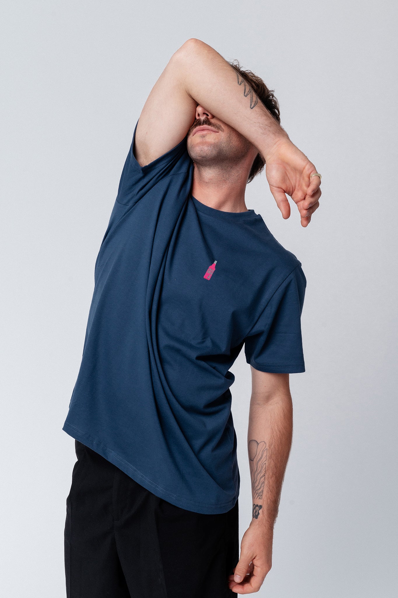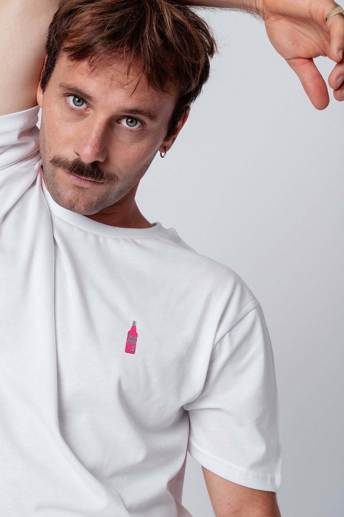 Besticktes Bio Baumwoll Unisex T-Shirt mit schwerem Stoff (190gsm) und der offiziellen gestickten DOS MAS Flasche