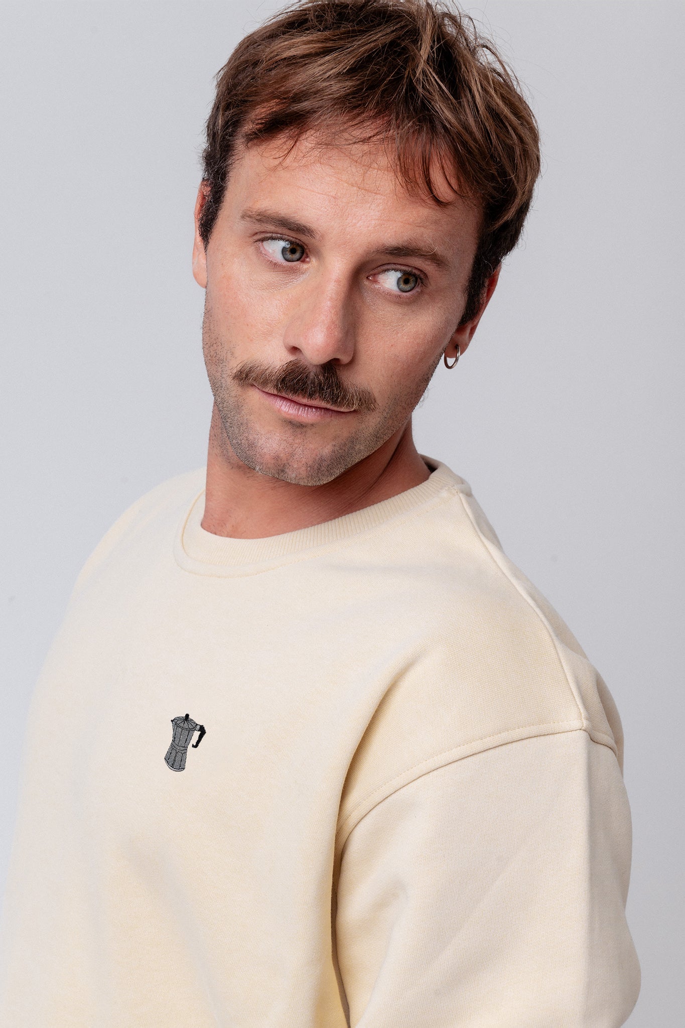 Super hochwertiger Bio Baumwoll Unisex Pullover mit extrem angenehmen Stoff (350gsm) und gesticktem Espressokocher Design