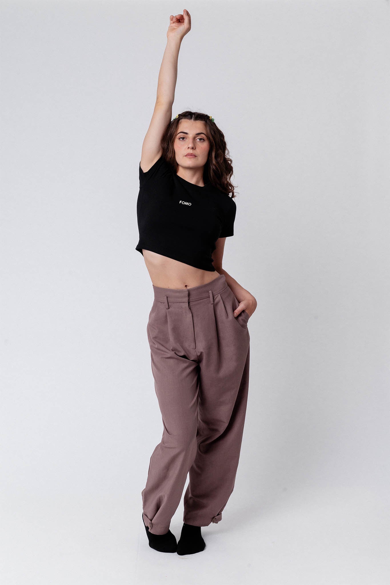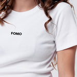 Super hochwertiges Bio Baumwoll Cropped T-Shirt mit gesticktem Fomo Schriftzug in drei verschiedenen Schnitt-Varianten: Ripped, Regular & Oversized