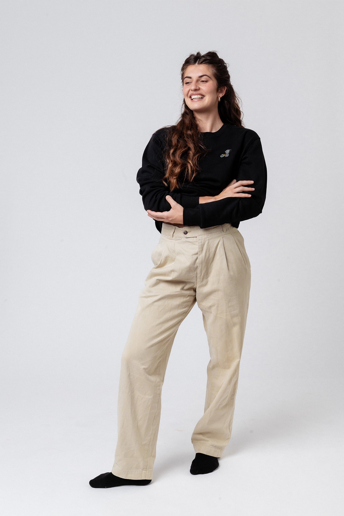 Super hochwertiger Bio Baumwoll Frauen Pullover mit extrem angenehmen Stoff (350gsm) und gesticktem morning Coffee Design