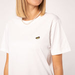 Besticktes Bio Baumwoll Unisex T-Shirt mit schwerem Stoff (190gsm) und gesticktem Hot Dog Design