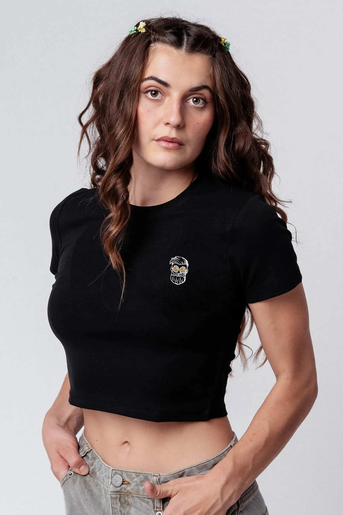 Kaffee Hipster | Besticktes Bio Baumwoll Cropped T-Shirt