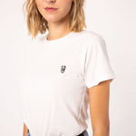 Super hochwertiges Bio Baumwoll Frauen T-Shirt mit extrem angenehmen Stoff (180gsm) und gesticktem Kaffee Hipster Design
