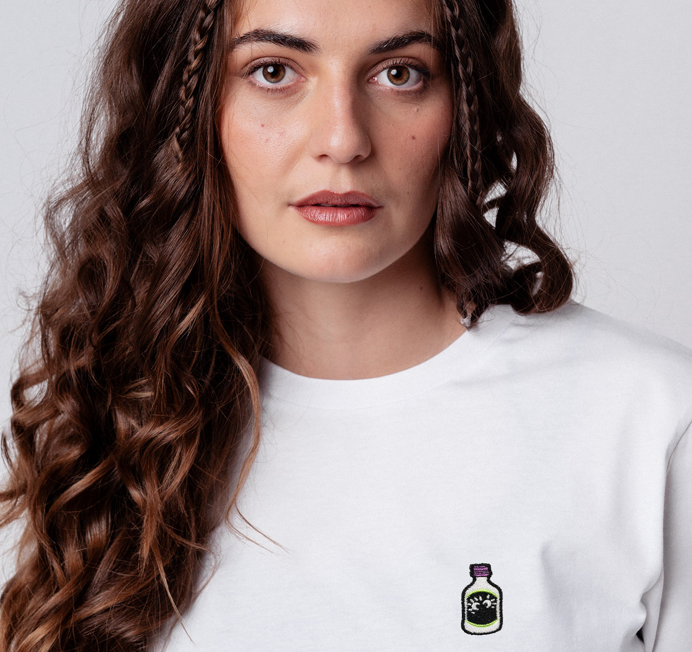 Hochwertige Stickerei auf weicher, atmungsaktiver Bio-Baumwolle.