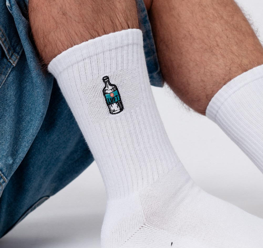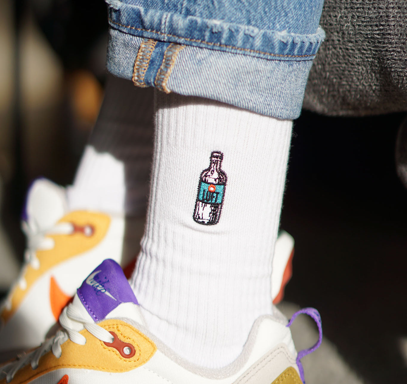 Wir sind nicht nur Mode – wir sind ein Lifestyle. Jedes Teil, das wir kreieren, ist inspiriert von ikonischen Getränken, gefertigt aus 100 % Bio-Baumwolle und bestickt mit hochwertigem, ökologischem Garn. Unsere Designs wie Aperol Spritz, Lillet Wildberry oder Jägermeister bestechen durch einen maximalen Detailgrad auf dezenter Größe auf Socken und anderen Textilien. Unser Fokus liegt auf Qualität, Authentizität und einer Leidenschaft für Kreativität.