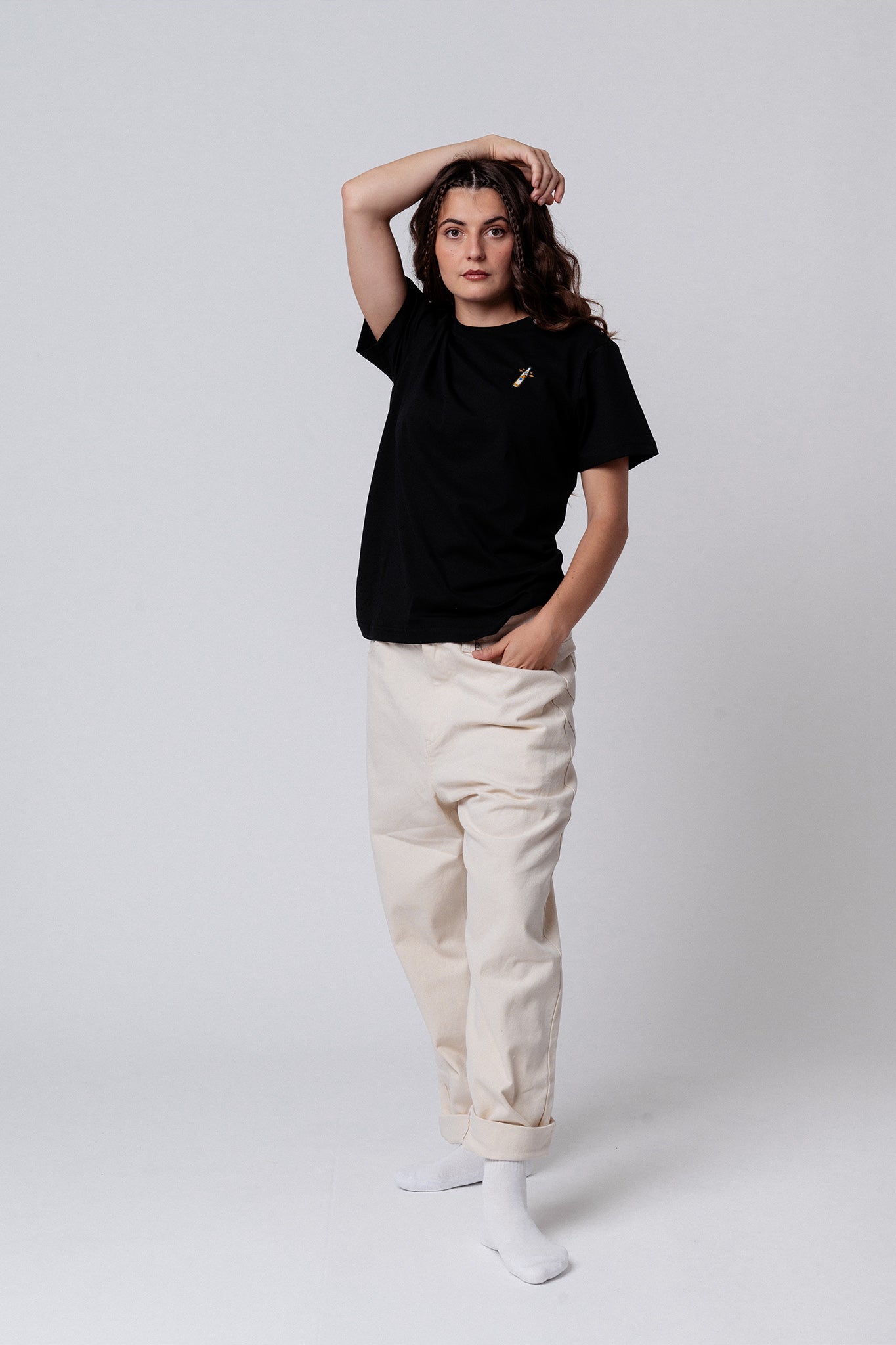 Besticktes Bio Baumwoll Unisex T-Shirt mit schwerem Stoff (190gsm) und gesticktem Mate Design