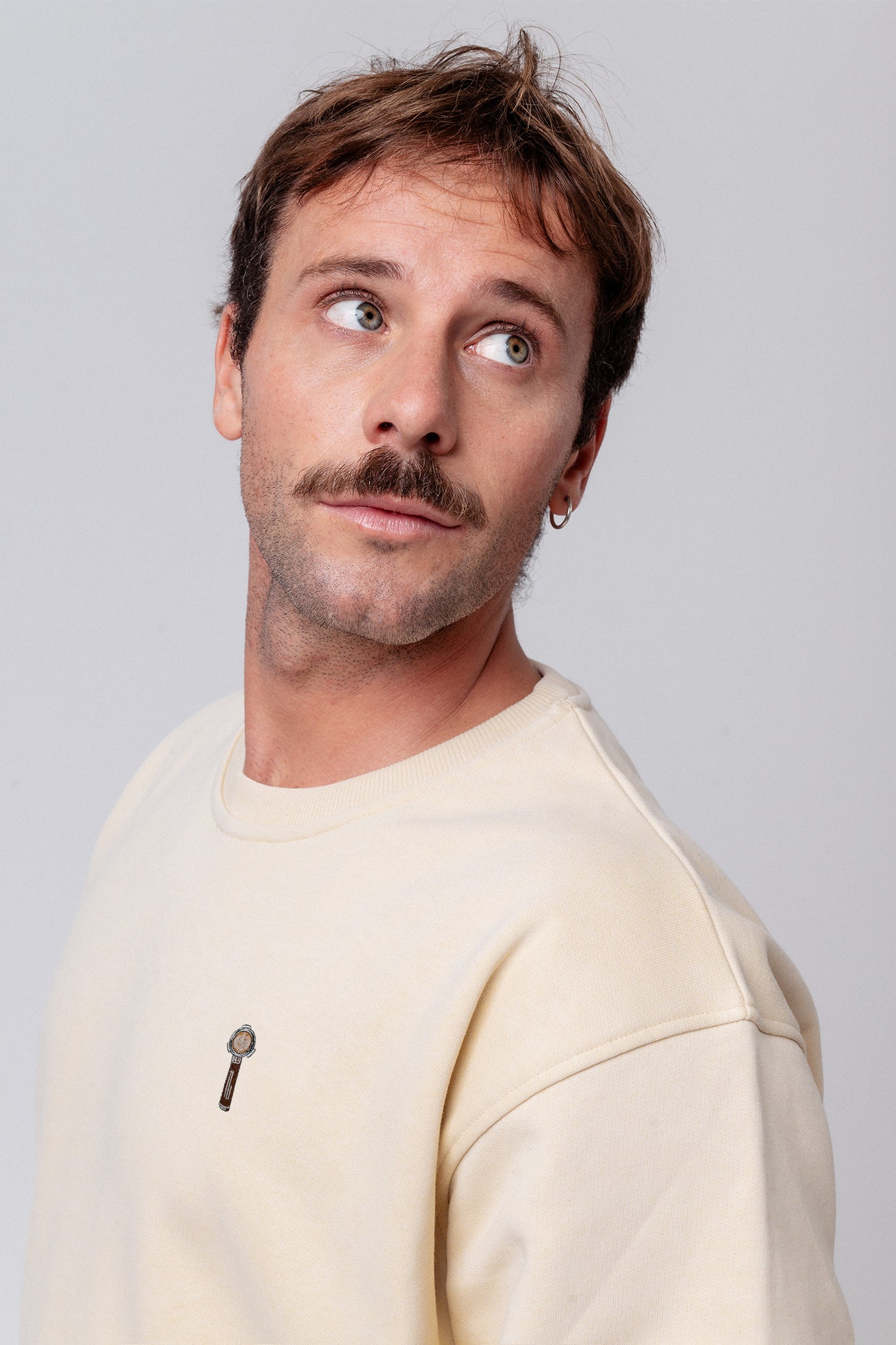 Super hochwertiger Bio Baumwoll Unisex Pullover mit extrem angenehmen Stoff (350gsm) und gesticktem Siebträger Latte Art Design