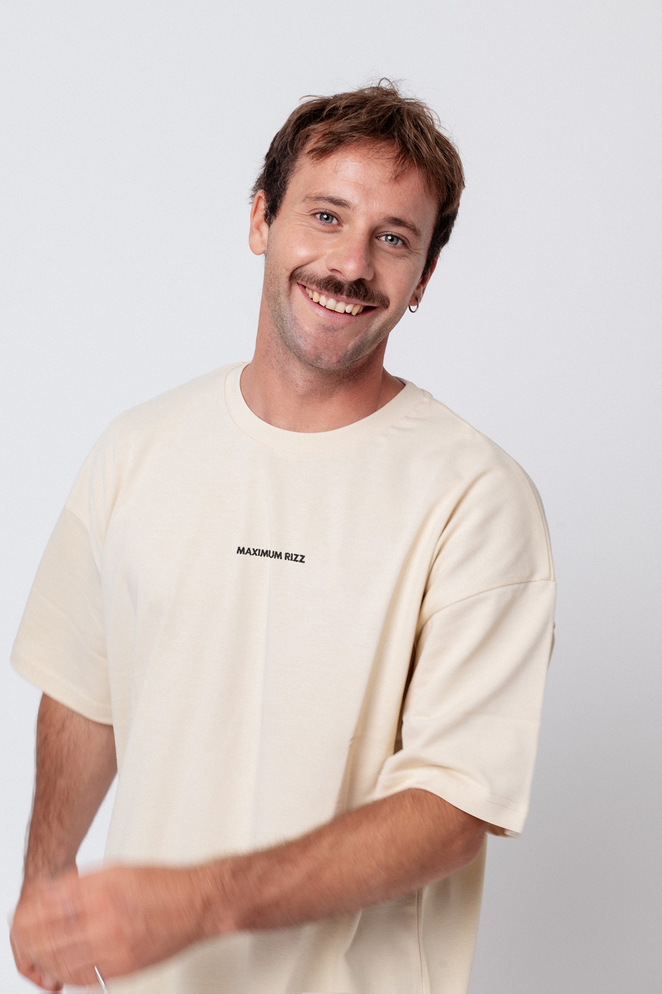 Heavy Oversized Bio Baumwoll T-Shirt mit extra schwerem Stoff (230gsm) und gesticktem Maximum Rizz Schriftzug