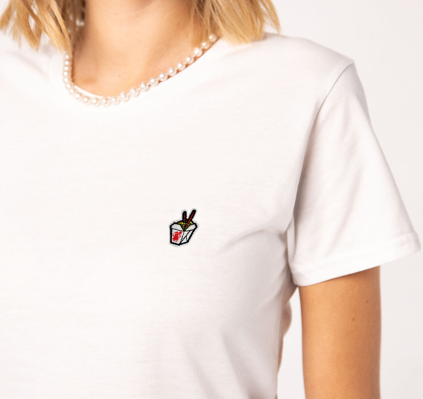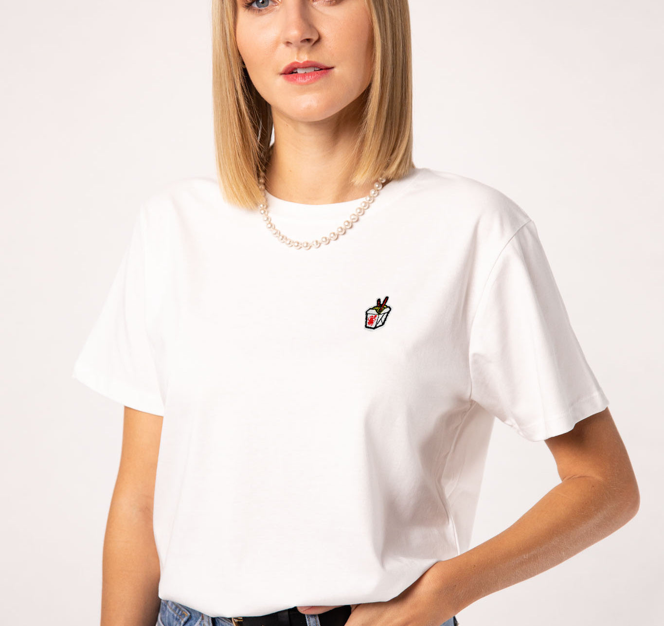 Hochwertige Stickerei auf weicher, atmungsaktiver Bio-Baumwolle.