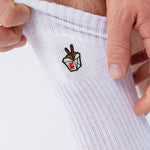 Super hochwertige Bio Baumwoll Crew Socken mit gesticktem Noodlebox Design