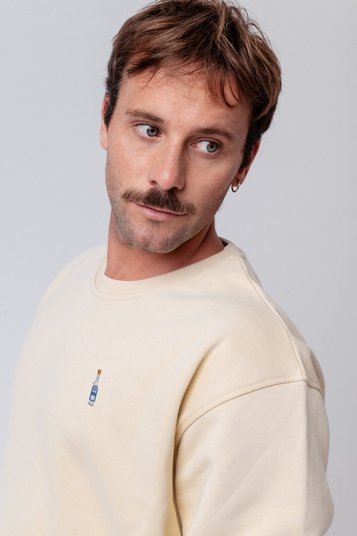 Bestickter Bio Baumwoll Unisex Pullover mit schwerem Stoff (320gsm) und gesticktem Ouzo Design