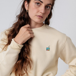 Super hochwertiger Bio Baumwoll Unisex Pullover mit schwerem Stoff (320gsm) und dem gestickten Pfirsich Eistee Design