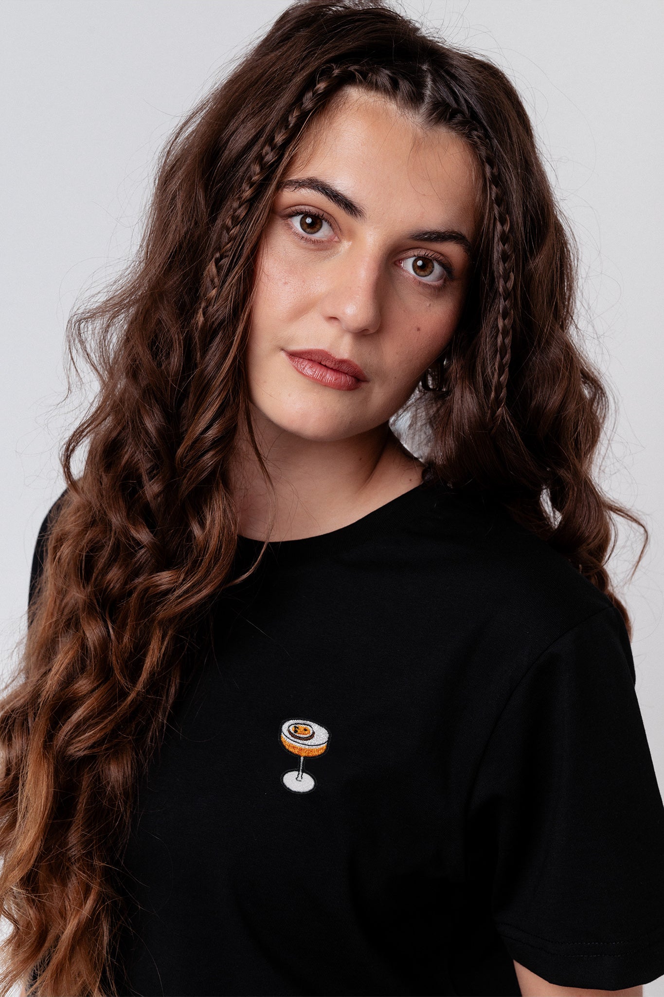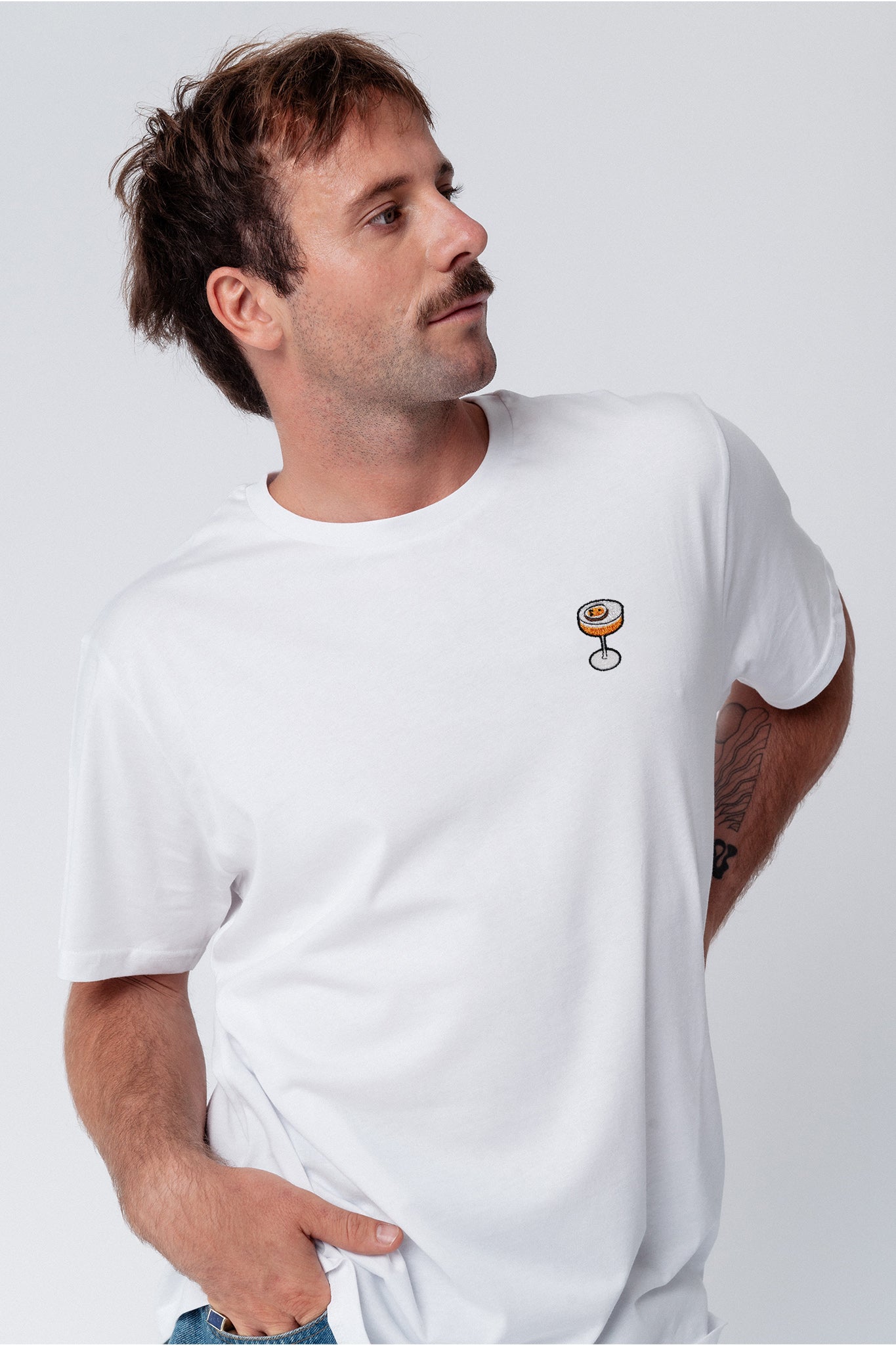 Besticktes Bio Baumwoll Unisex T-Shirt mit schwerem Stoff (190gsm) und gesticktem Pornstar Martini Design