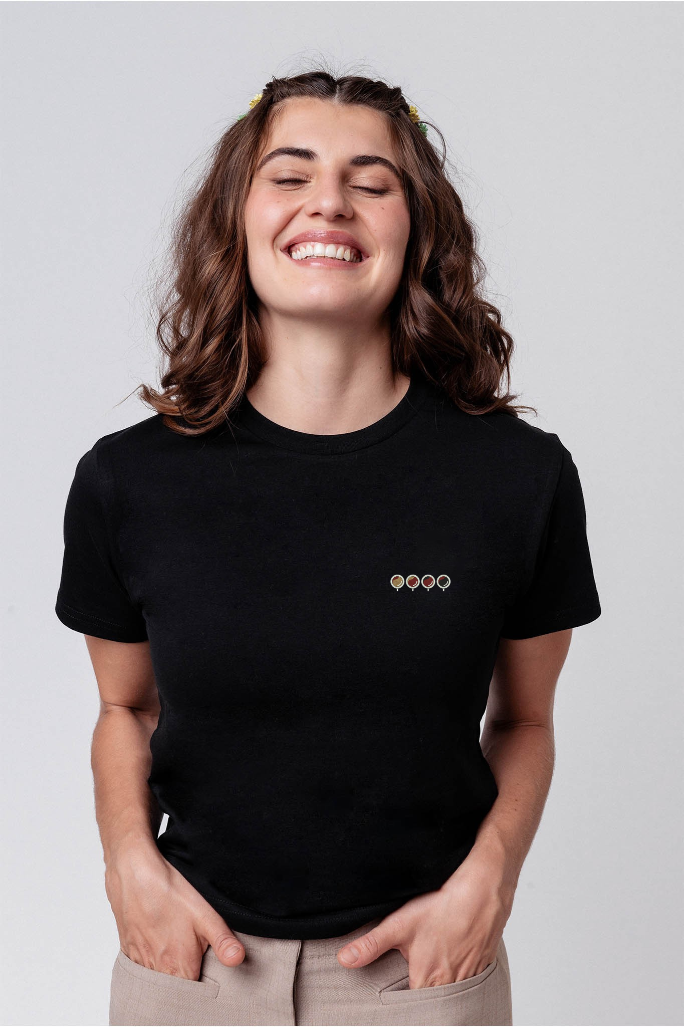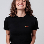 Besticktes Bio Baumwoll Frauen T-Shirt mit extrem angenehmen Stoff (155gsm) und gesticktem Quattro Espressi Design