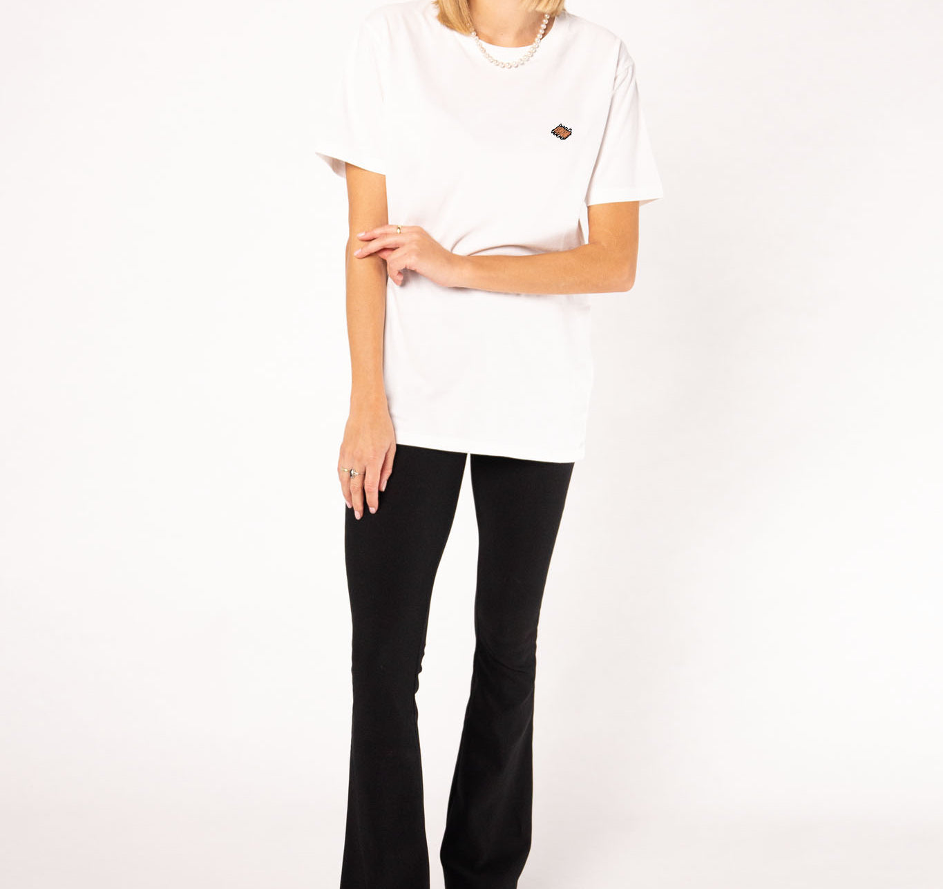 Hochwertige Stickerei auf weicher, atmungsaktiver Bio-Baumwolle.