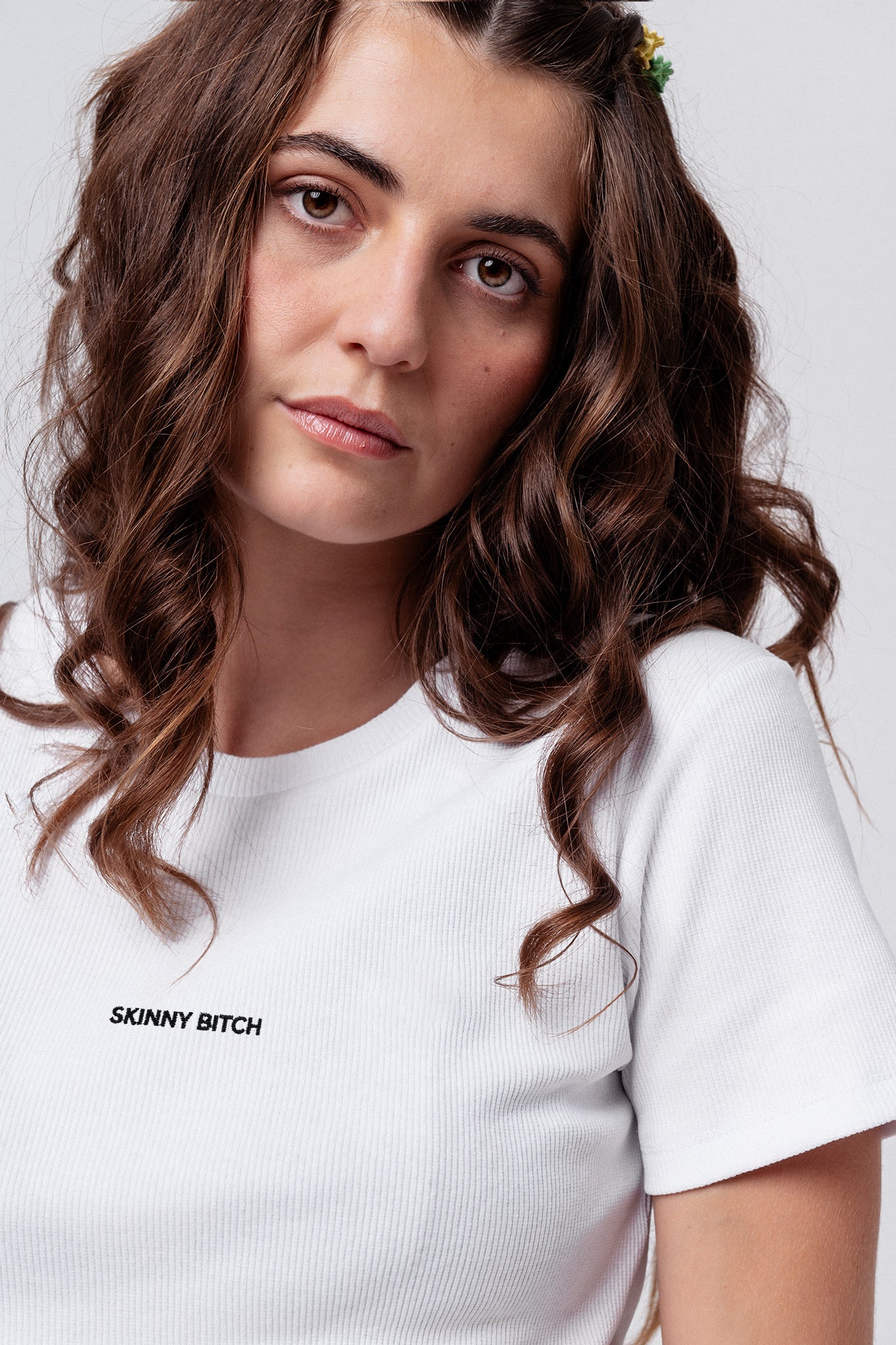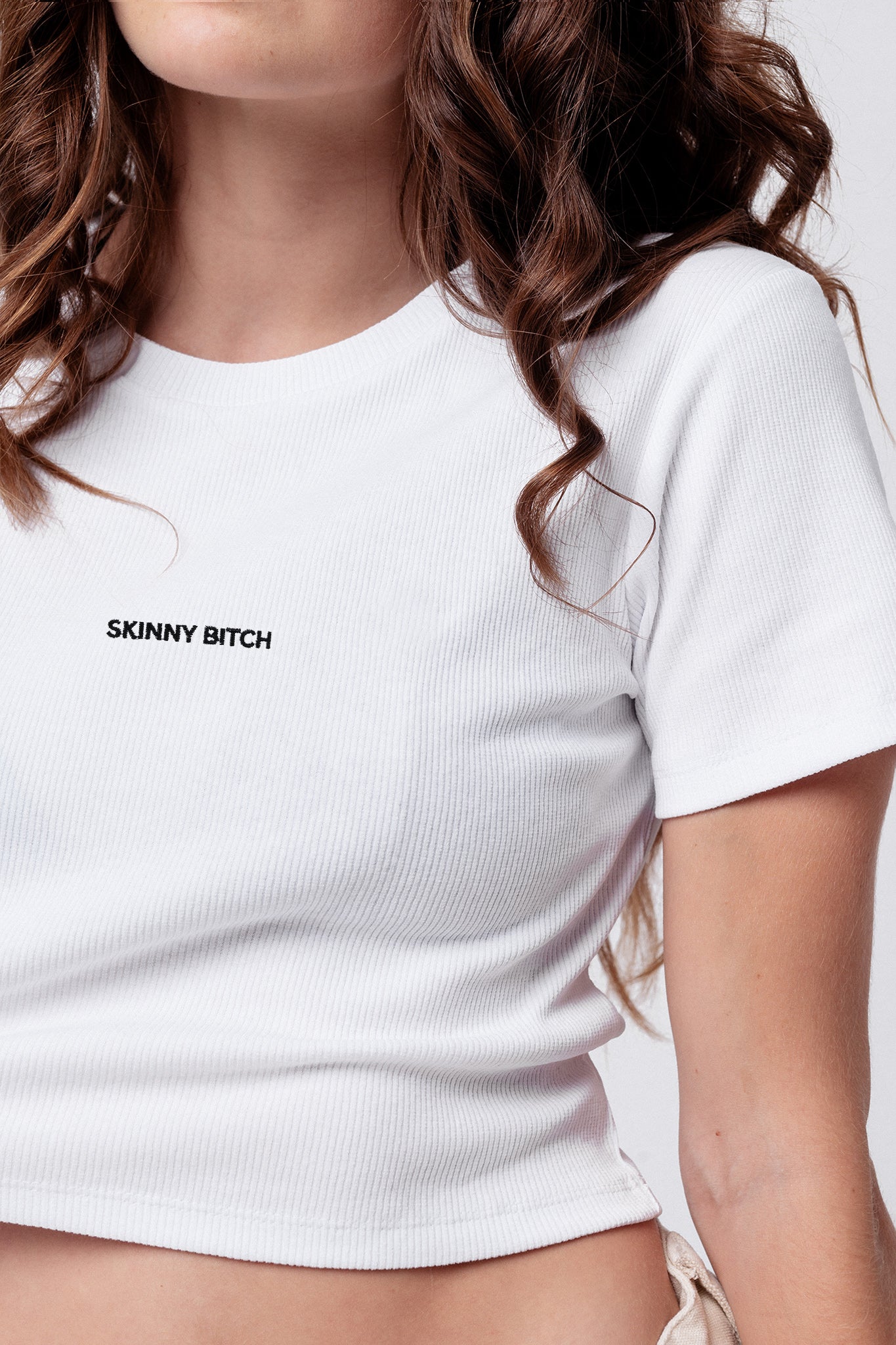 Skinny Bitch | Besticktes Bio Baumwoll Cropped T-Shirt