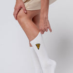 Super hochwertige Bio Baumwoll Crew Socken mit gesticktem Pizza Design