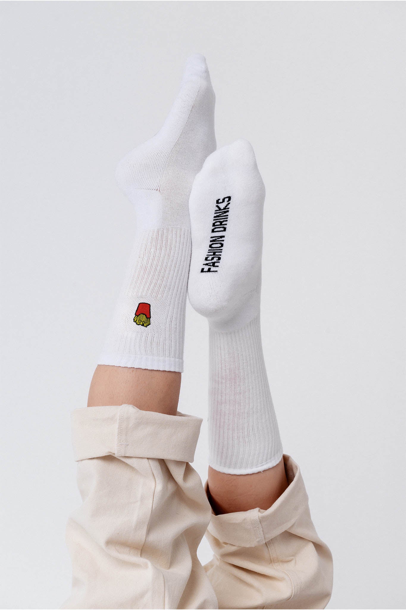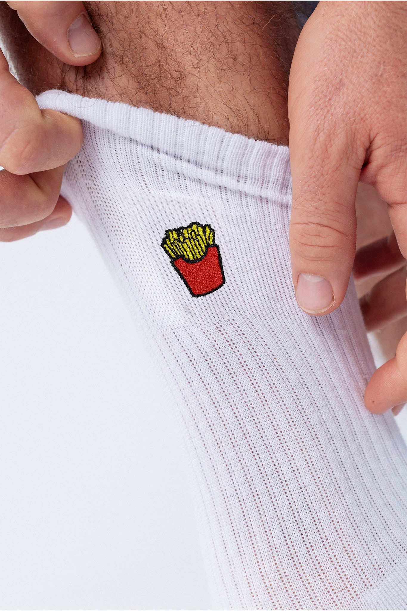 Super hochwertige Bio Baumwoll Crew Socken mit gesticktem Pommes Design