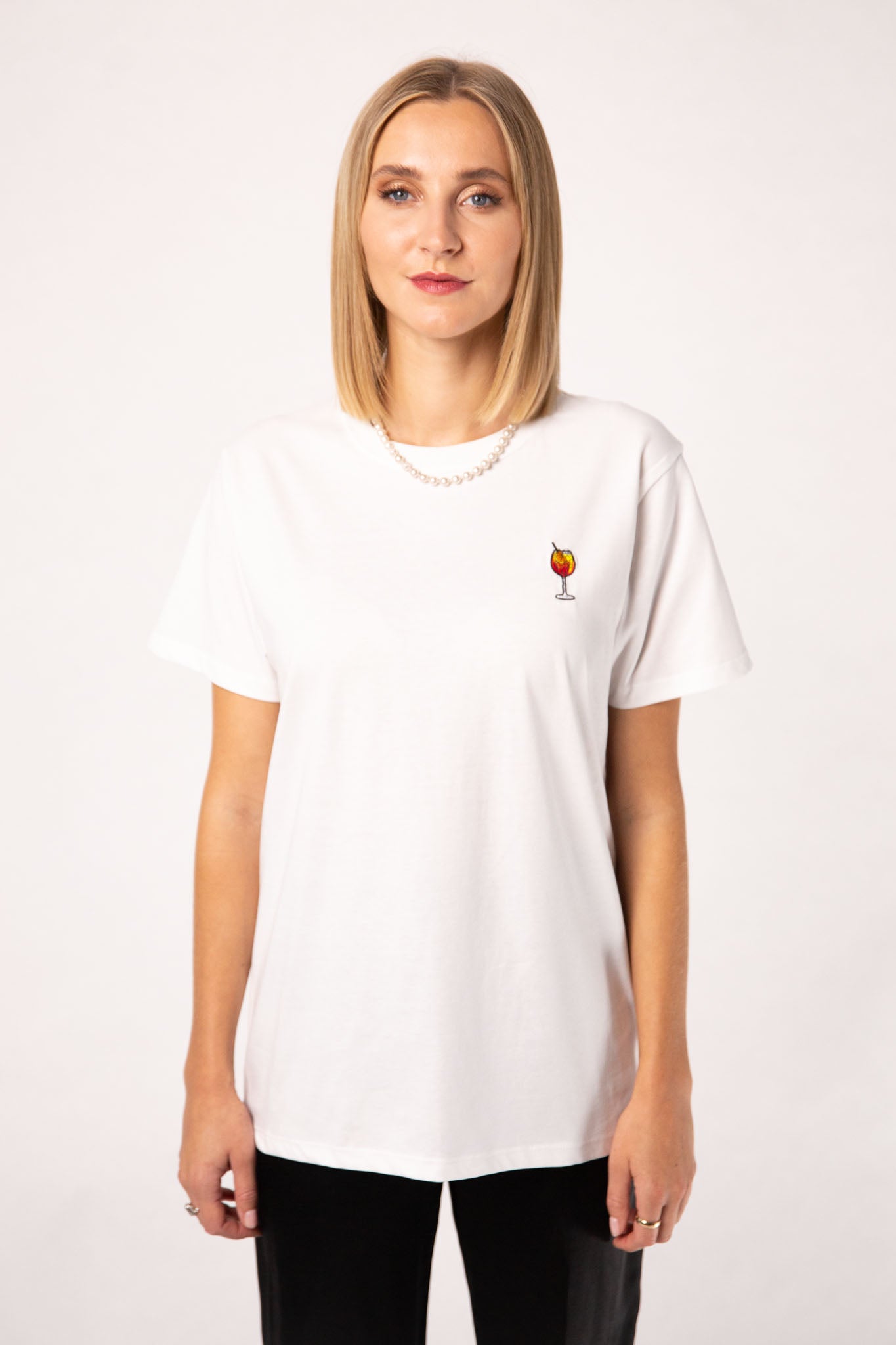 Super hochwertiges Bio Baumwoll Unisex T-Shirt mit schwerem Stoff (190gsm) und gesticktem Spritz Design